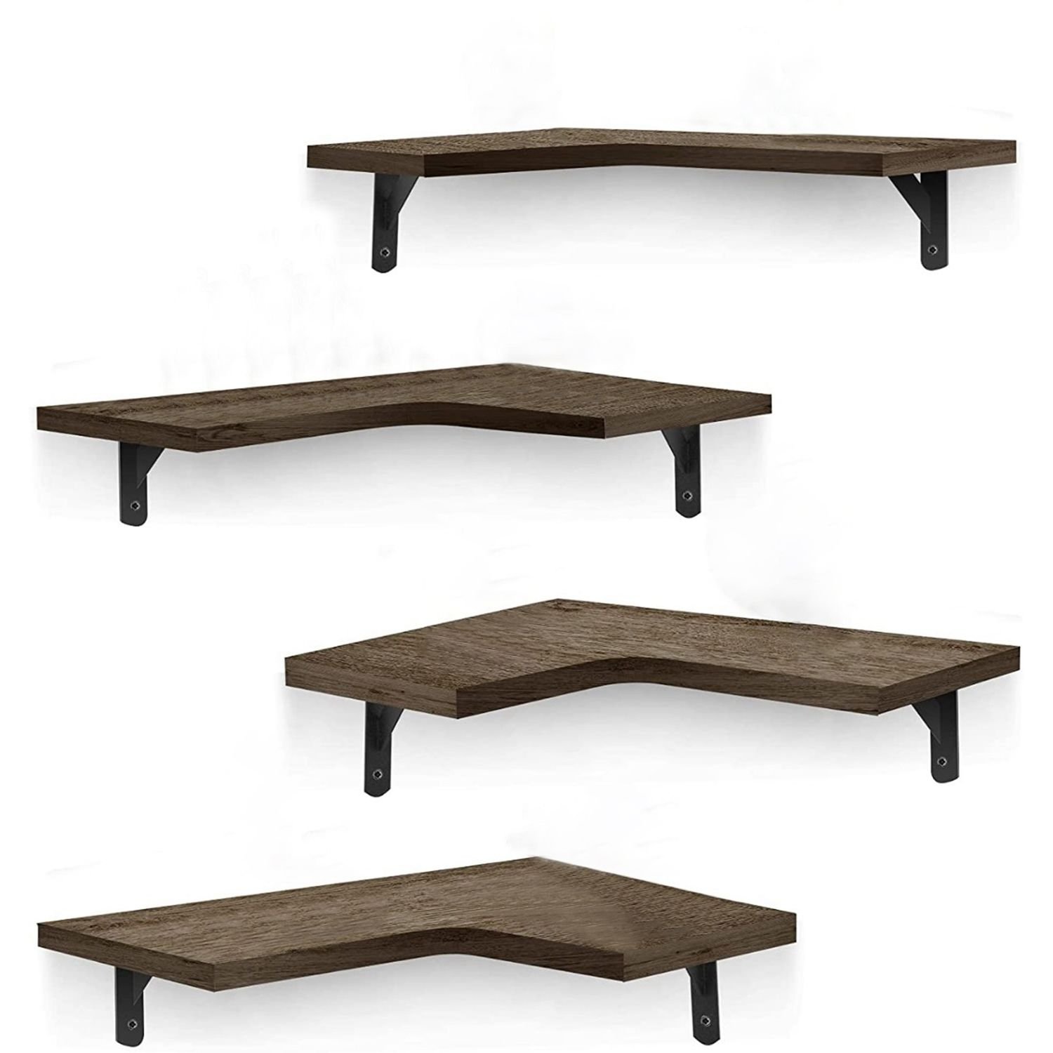 4Packs Corner Floating Shelf Wall Mount Display Storage Shelf Organizer Wood Metal Bedroom Living Room Décor