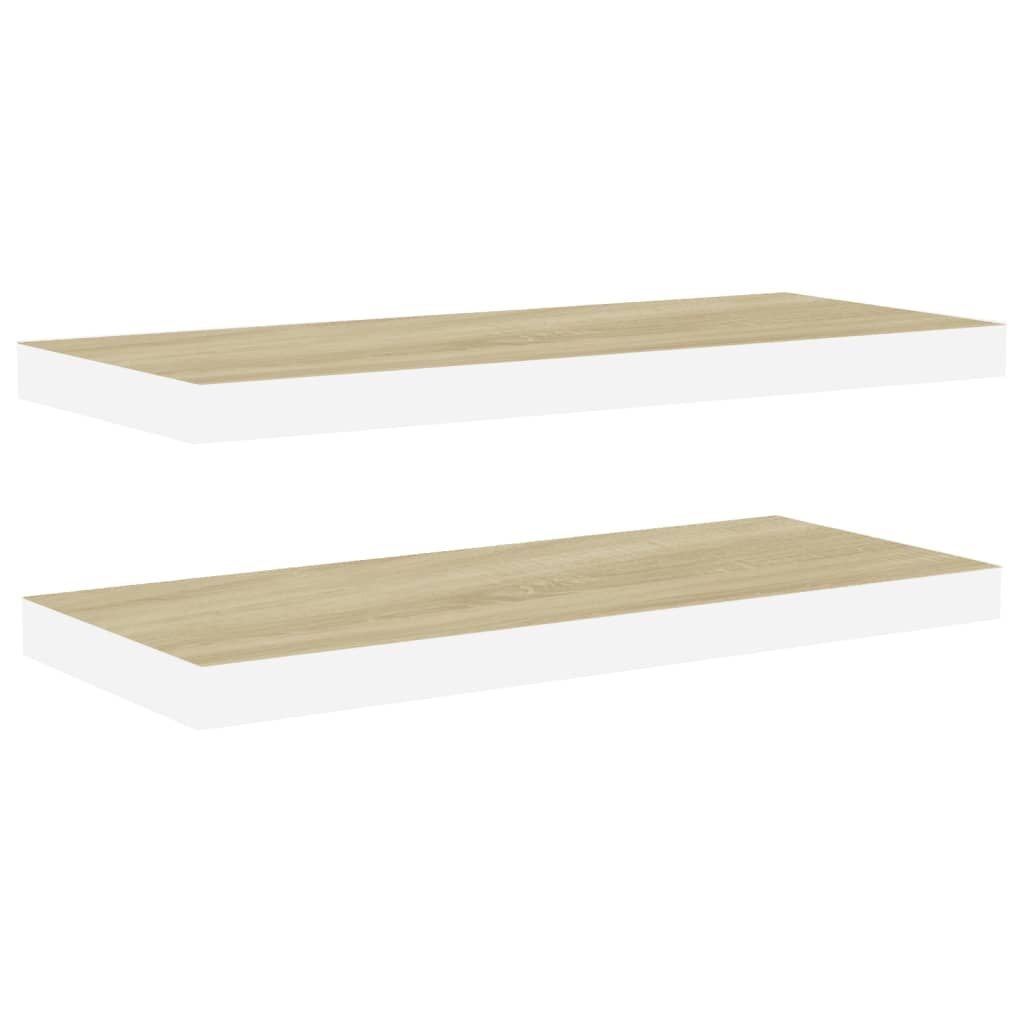 Floating Wall Shelves 2 pcs Oak and White 23.6"x9.3"x1.5" MDF