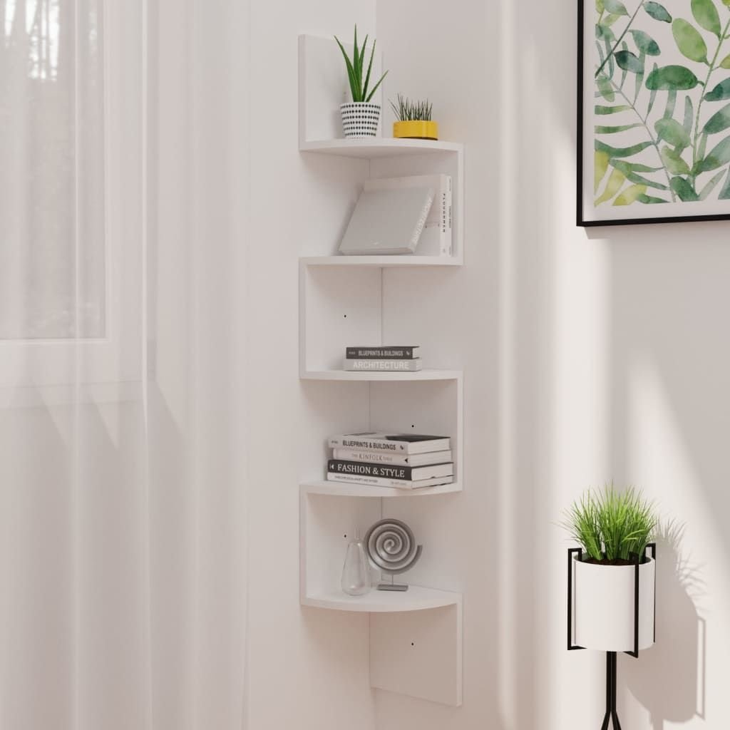 Wall Corner Shelf White 7.5"x7.5"x48.4" Engineered Wood Wall Corner Shelf White 7.5"x7.5"x48.4" Engineered Wood Wall Corner Shelf White 7.5"x7.5"x48.4" Engineered Wood